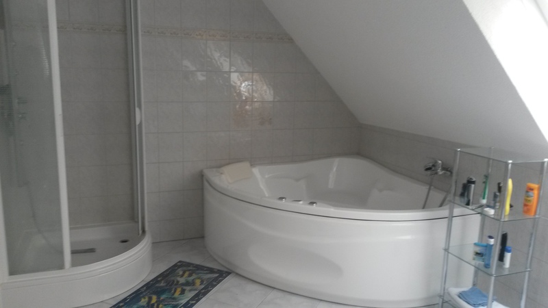 großes Bad mit Dusche, Wirlpool, 2x Waschtisch